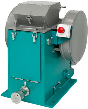 Загрузочный бункер фиксируется на корпусе за счет латчеров. В корпусе предусмотрены окна в передней и задней стенках для очистки дробилки от пыли. Во время работы окна закрываются откидными крышками.